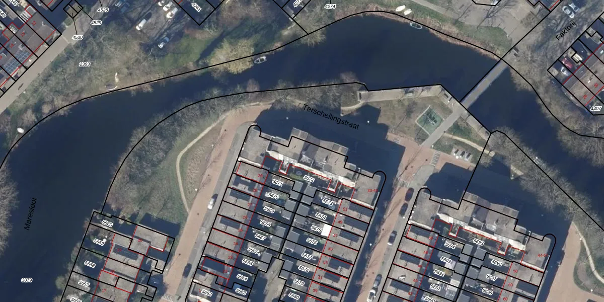 Het perceel waarop Terschellingstraat 34 staat heeft een oppervlakte van 600 m². Dit is een groot perceel. De perceeloppervlakte wordt geregistreerd door het Kadaster. Gedetailleerde informatie over de maten van dit perceel kunt u vinden in het rapport Kadastrale kaart met maatvoering van Terschellingstraat 34.