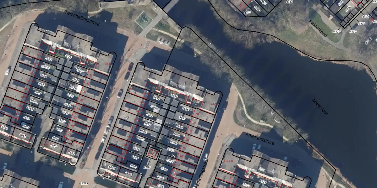 Het perceel waarop Terschellingstraat 54 staat heeft een oppervlakte van 600 m². Dit is een groot perceel. De perceeloppervlakte wordt geregistreerd door het Kadaster. Gedetailleerde informatie over de maten van dit perceel kunt u vinden in het rapport Kadastrale kaart met maatvoering van Terschellingstraat 54.
