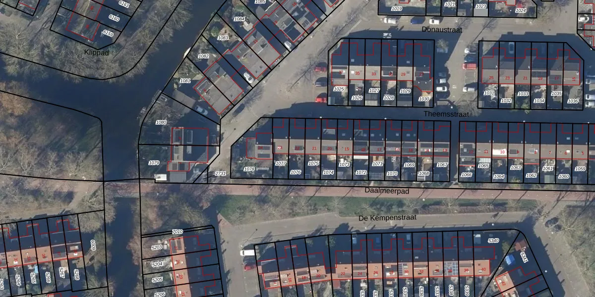 Gebruik de zoekbalk of klik op een perceel voor informatie over de adressen binnen dit perceel.