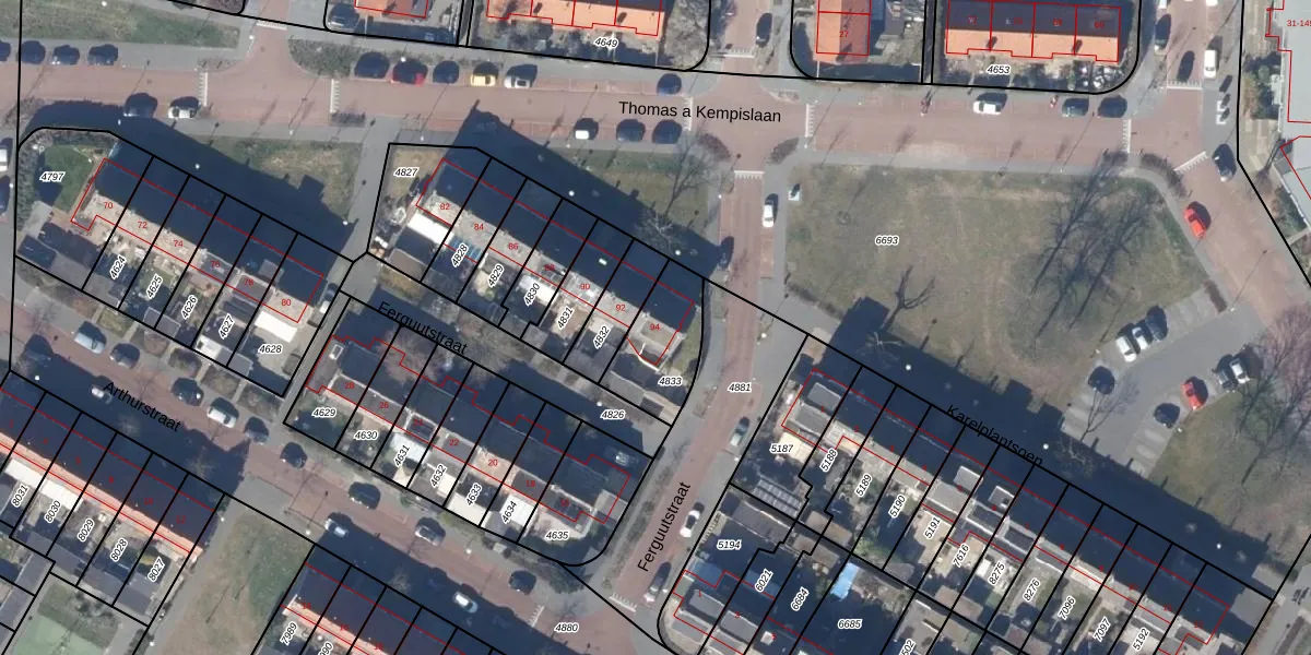 Het perceel waarop Thomas a Kempislaan 94 staat heeft een oppervlakte van 239 m². Dit is een middelgroot perceel. De perceeloppervlakte wordt geregistreerd door het Kadaster. Gedetailleerde informatie over de maten van dit perceel kunt u vinden in het rapport Kadastrale kaart met maatvoering van Thomas a Kempislaan 94.