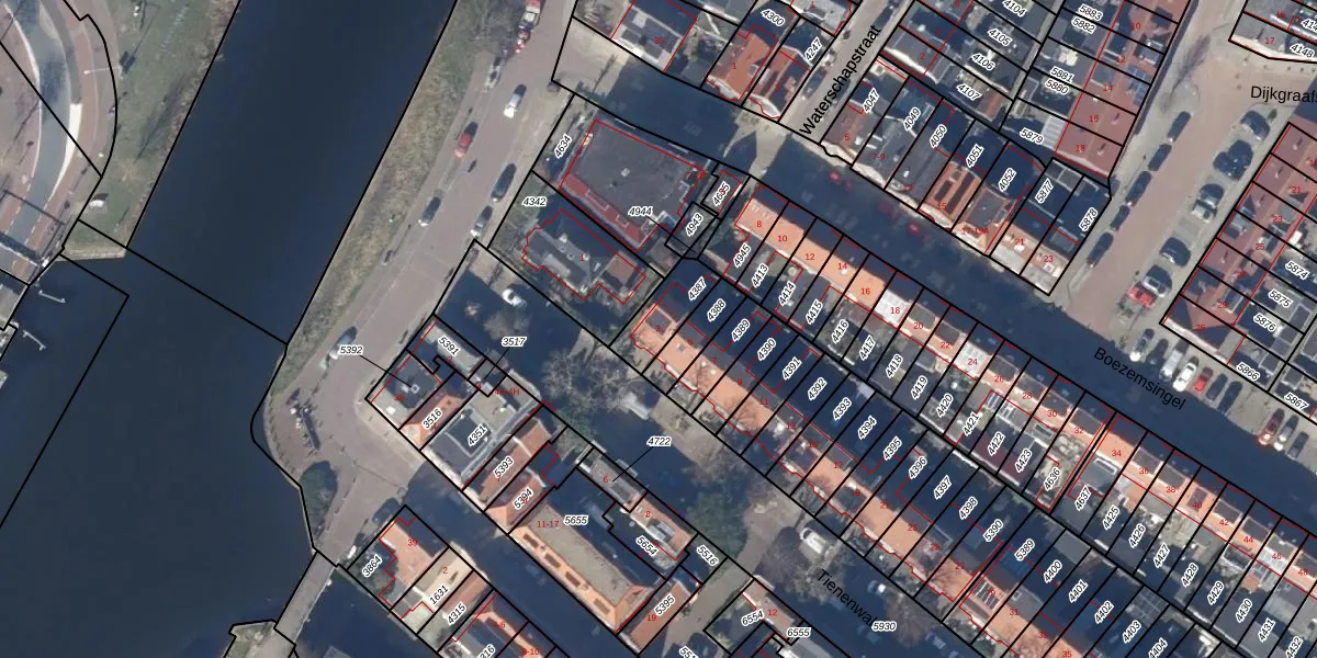 Gebruik de zoekbalk of klik op een perceel voor informatie over de adressen binnen dit perceel.