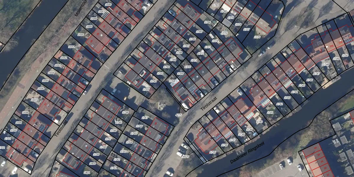 Het perceel waarop Tirolstraat 101 staat heeft een oppervlakte van 172 m². Dit is een middelgroot perceel. De perceeloppervlakte wordt geregistreerd door het Kadaster. Gedetailleerde informatie over de maten van dit perceel kunt u vinden in het rapport Kadastrale kaart met maatvoering van Tirolstraat 101.