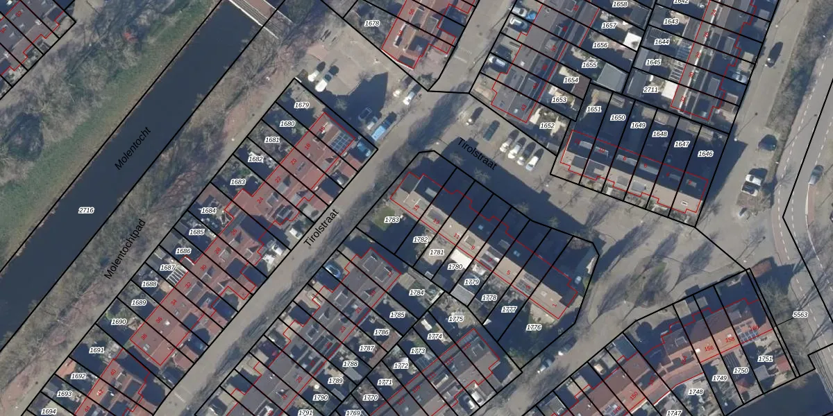 Het perceel waarop Tirolstraat 15 staat heeft een oppervlakte van 264 m². Dit is een middelgroot perceel. De perceeloppervlakte wordt geregistreerd door het Kadaster. Gedetailleerde informatie over de maten van dit perceel kunt u vinden in het rapport Kadastrale kaart met maatvoering van Tirolstraat 15.