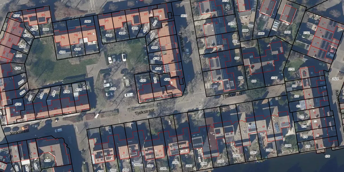 Het perceel waarop Tjalkstraat 5 staat heeft een oppervlakte van 137 m². Dit is een middelgroot perceel. De perceeloppervlakte wordt geregistreerd door het Kadaster. Gedetailleerde informatie over de maten van dit perceel kunt u vinden in het rapport Kadastrale kaart met maatvoering van Tjalkstraat 5.