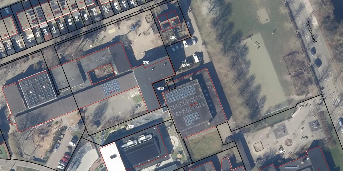 Gebruik de zoekbalk of klik op een perceel voor informatie over de adressen binnen dit perceel.