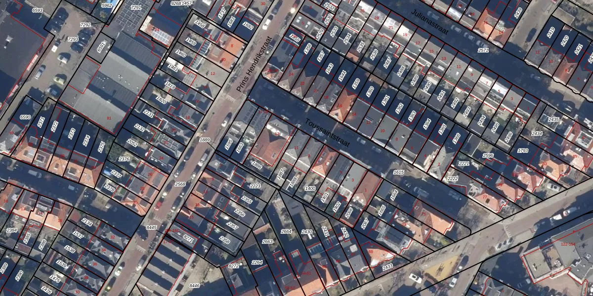 Gebruik de zoekbalk of klik op een perceel voor informatie over de adressen binnen dit perceel.