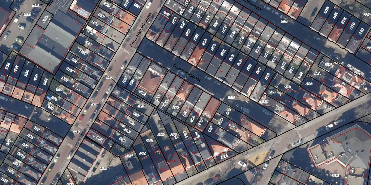 Gebruik de zoekbalk of klik op een perceel voor informatie over de adressen binnen dit perceel.