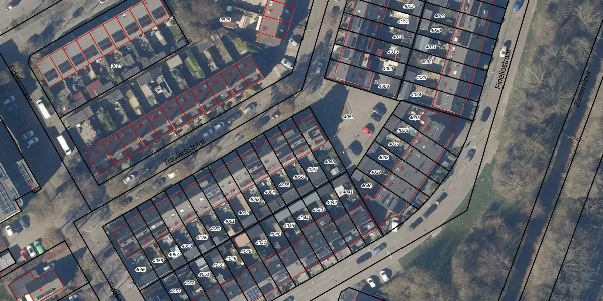 Traviatastraat 23 is gelegen op kadastraal perceel AMR01I4067. Deze kadastrale aanduiding is uniek en wordt gebruikt door het Kadaster om eigendomsrechten en andere zakelijke rechten vast te leggen. Het perceel maakt onderdeel uit van de kadastrale gemeente Alkmaar.
