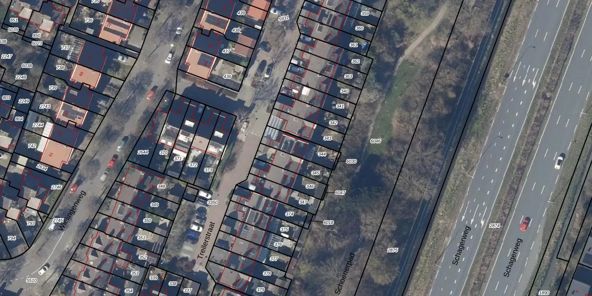 Gebruik de zoekbalk of klik op een perceel voor informatie over de adressen binnen dit perceel.