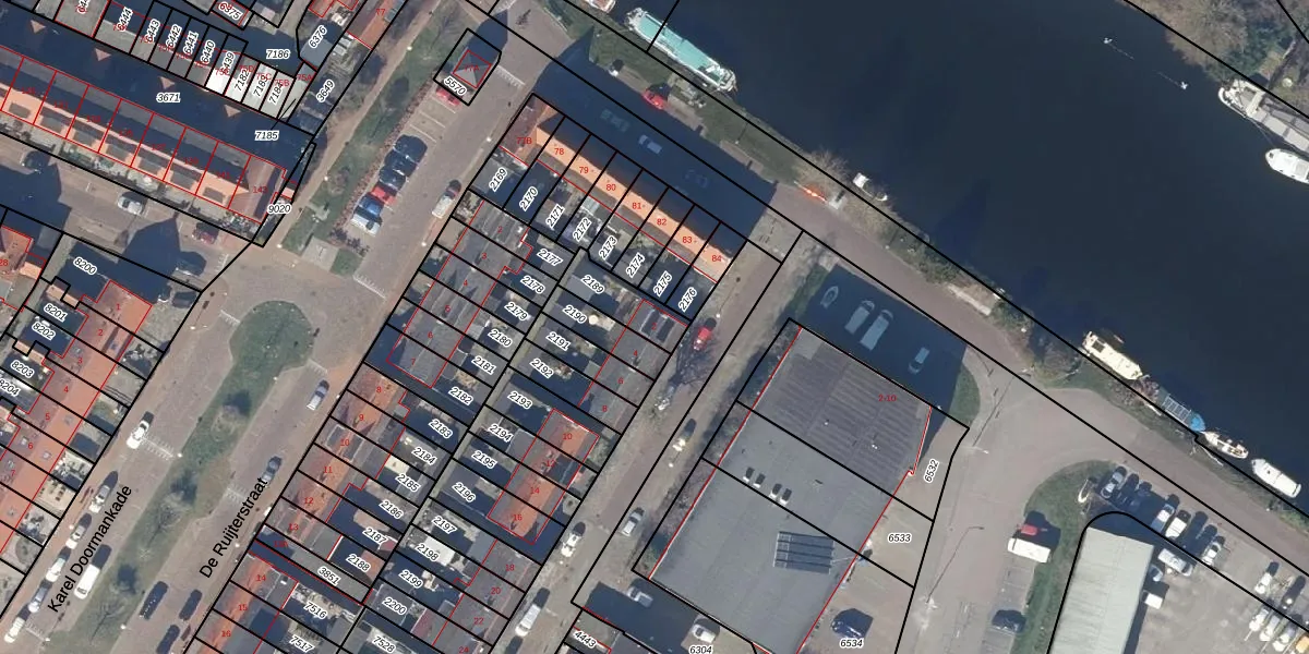 Gebruik de zoekbalk of klik op een perceel voor informatie over de adressen binnen dit perceel.