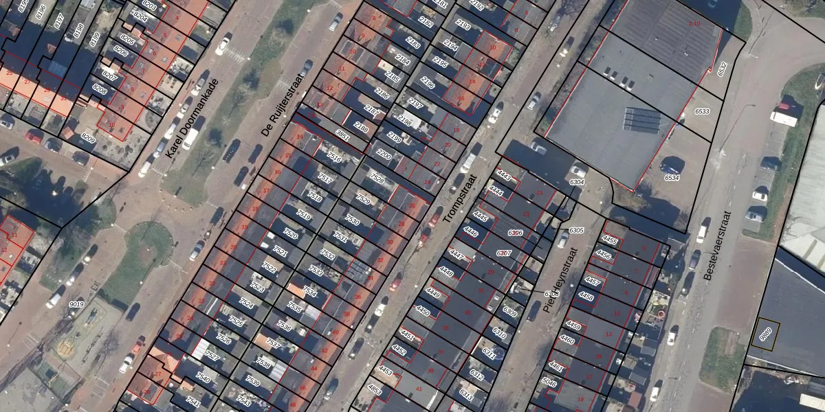 Gebruik de zoekbalk of klik op een perceel voor informatie over de adressen binnen dit perceel.