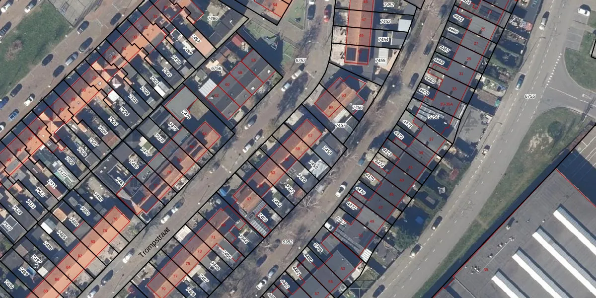 Het perceel waarop Trompstraat 59 staat heeft een oppervlakte van 132 m². Dit is een middelgroot perceel. De perceeloppervlakte wordt geregistreerd door het Kadaster. Gedetailleerde informatie over de maten van dit perceel kunt u vinden in het rapport Kadastrale kaart met maatvoering van Trompstraat 59.