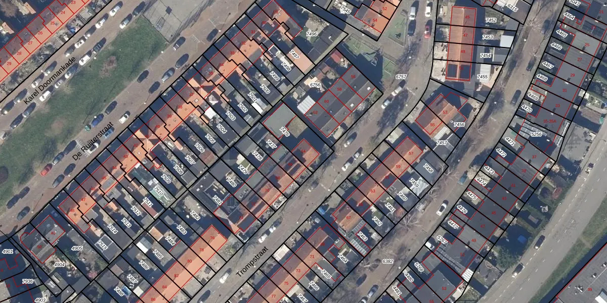 Trompstraat 64 is gelegen op kadastraal perceel AMR01F7476. Deze kadastrale aanduiding is uniek en wordt gebruikt door het Kadaster om eigendomsrechten en andere zakelijke rechten vast te leggen. Het perceel maakt onderdeel uit van de kadastrale gemeente Alkmaar.