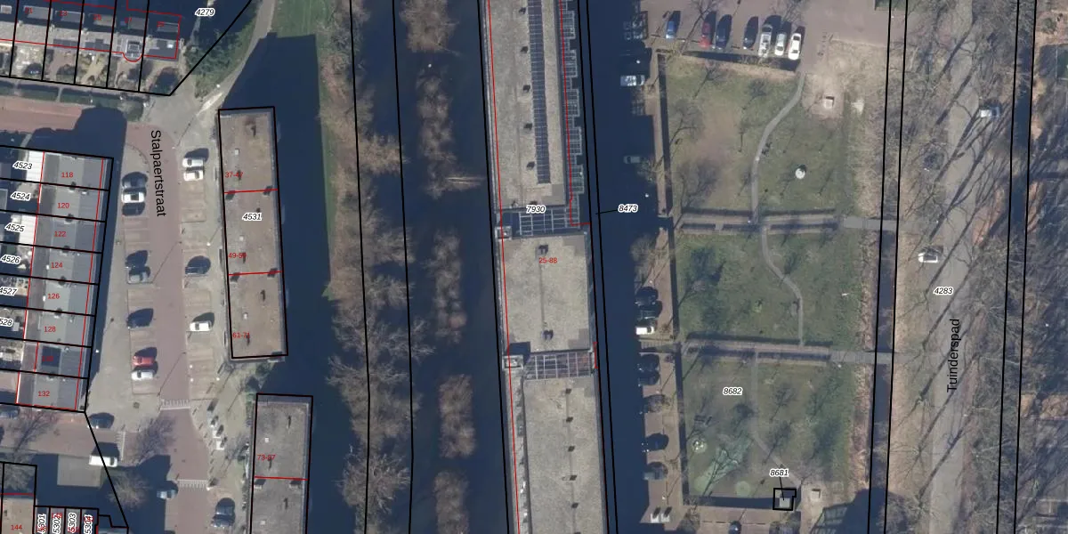 Het perceel waarop Tuinderspad 52 staat heeft een oppervlakte van 5073 m². Dit is een zeer groot perceel. De perceeloppervlakte wordt geregistreerd door het Kadaster. Gedetailleerde informatie over de maten van dit perceel kunt u vinden in het rapport Kadastrale kaart met maatvoering van Tuinderspad 52.