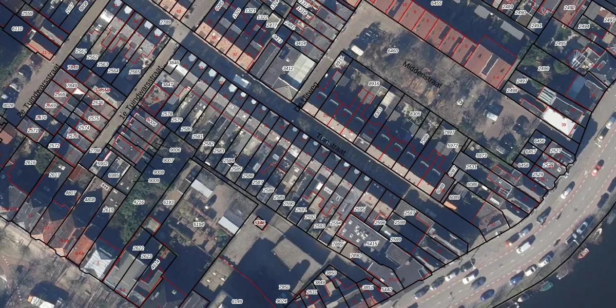 Gebruik de zoekbalk of klik op een perceel voor informatie over de adressen binnen dit perceel.