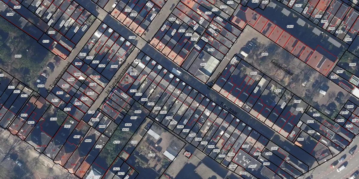 Gebruik de zoekbalk of klik op een perceel voor informatie over de adressen binnen dit perceel.