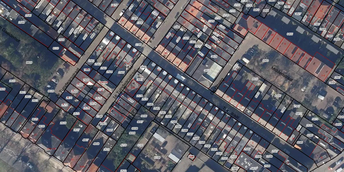 Het perceel waarop Tuinstraat 33 staat heeft een oppervlakte van 100 m². Dit is een middelgroot perceel. De perceeloppervlakte wordt geregistreerd door het Kadaster. Gedetailleerde informatie over de maten van dit perceel kunt u vinden in het rapport Kadastrale kaart met maatvoering van Tuinstraat 33.