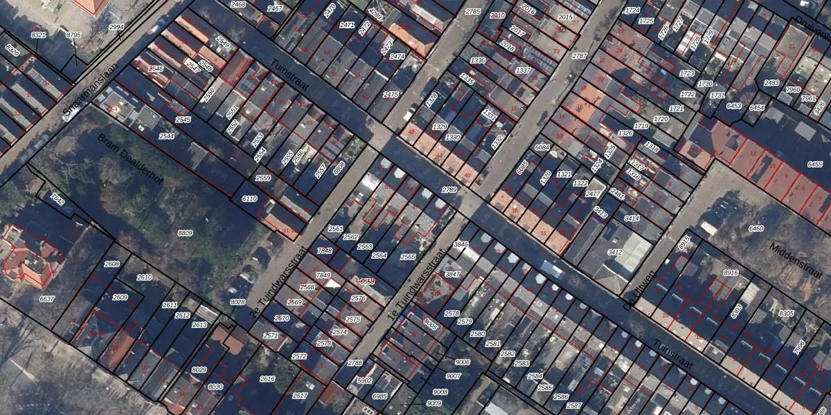 Het perceel waarop Tuinstraat 47 staat heeft een oppervlakte van 101 m². Dit is een middelgroot perceel. De perceeloppervlakte wordt geregistreerd door het Kadaster. Gedetailleerde informatie over de maten van dit perceel kunt u vinden in het rapport Kadastrale kaart met maatvoering van Tuinstraat 47.
