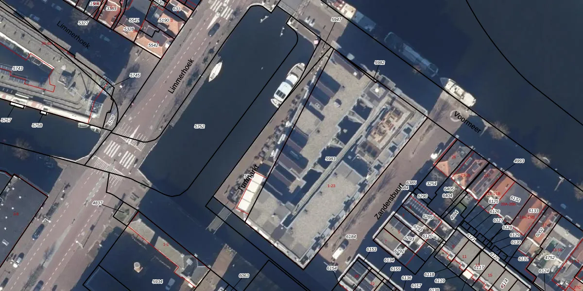 Het perceel waarop Turfmarkt 13 staat heeft een oppervlakte van 2187 m². Dit is een zeer groot perceel. De perceeloppervlakte wordt geregistreerd door het Kadaster. Gedetailleerde informatie over de maten van dit perceel kunt u vinden in het rapport Kadastrale kaart met maatvoering van Turfmarkt 13.