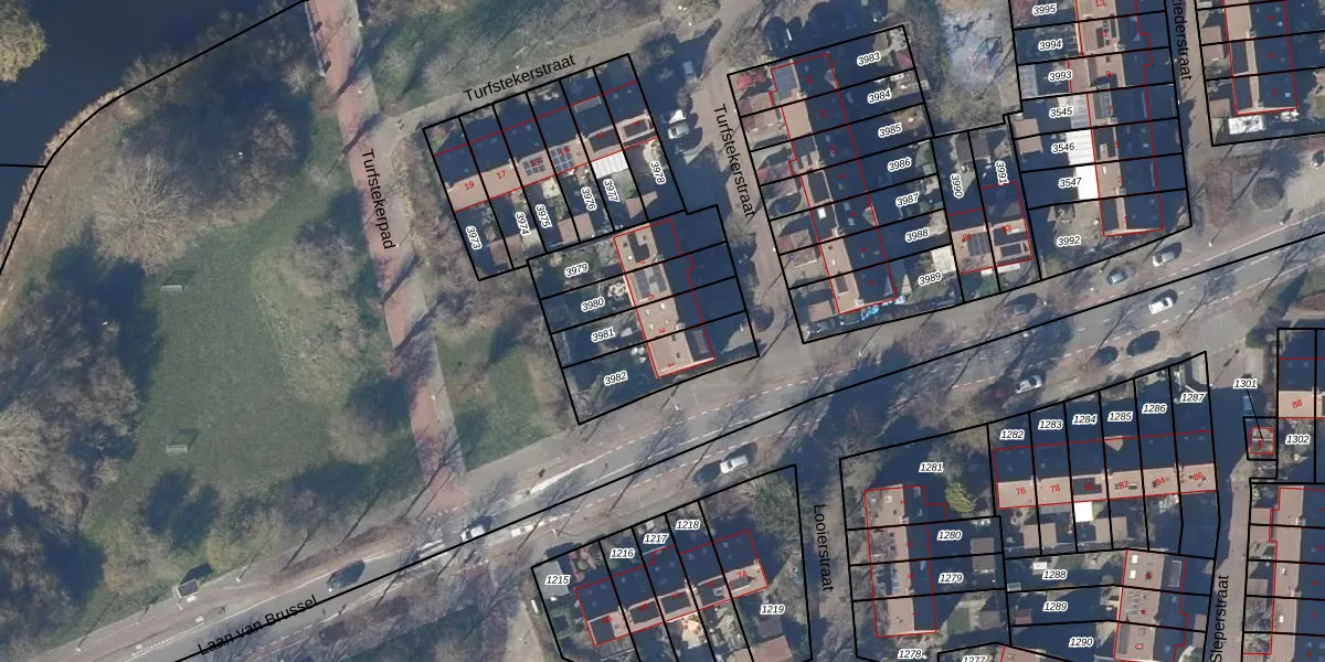 Gebruik de zoekbalk of klik op een perceel voor informatie over de adressen binnen dit perceel.