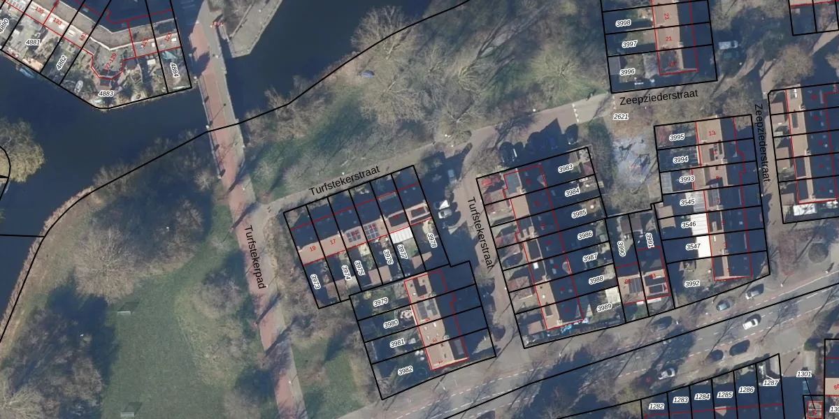 Gebruik de zoekbalk of klik op een perceel voor informatie over de adressen binnen dit perceel.