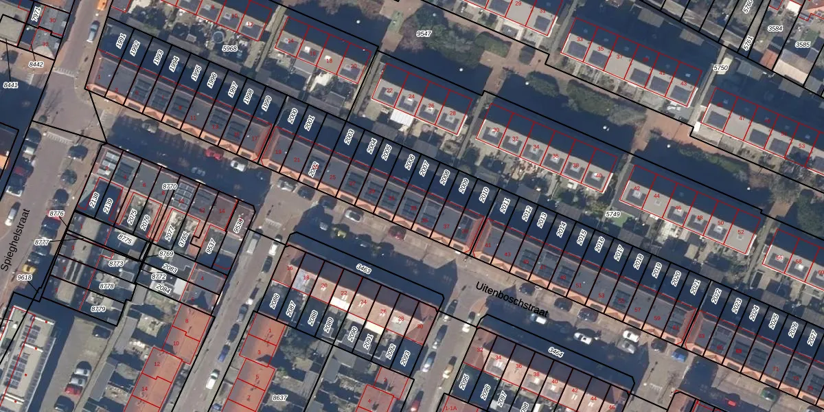 Het perceel waarop Uitenboschstraat 33 staat heeft een oppervlakte van 90 m². Dit is een klein perceel. De perceeloppervlakte wordt geregistreerd door het Kadaster. Gedetailleerde informatie over de maten van dit perceel kunt u vinden in het rapport Kadastrale kaart met maatvoering van Uitenboschstraat 33.