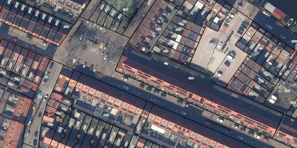Het perceel waarop Uitenboschstraat 87 staat heeft een oppervlakte van 2378 m². Dit is een zeer groot perceel. De perceeloppervlakte wordt geregistreerd door het Kadaster. Gedetailleerde informatie over de maten van dit perceel kunt u vinden in het rapport Kadastrale kaart met maatvoering van Uitenboschstraat 87.