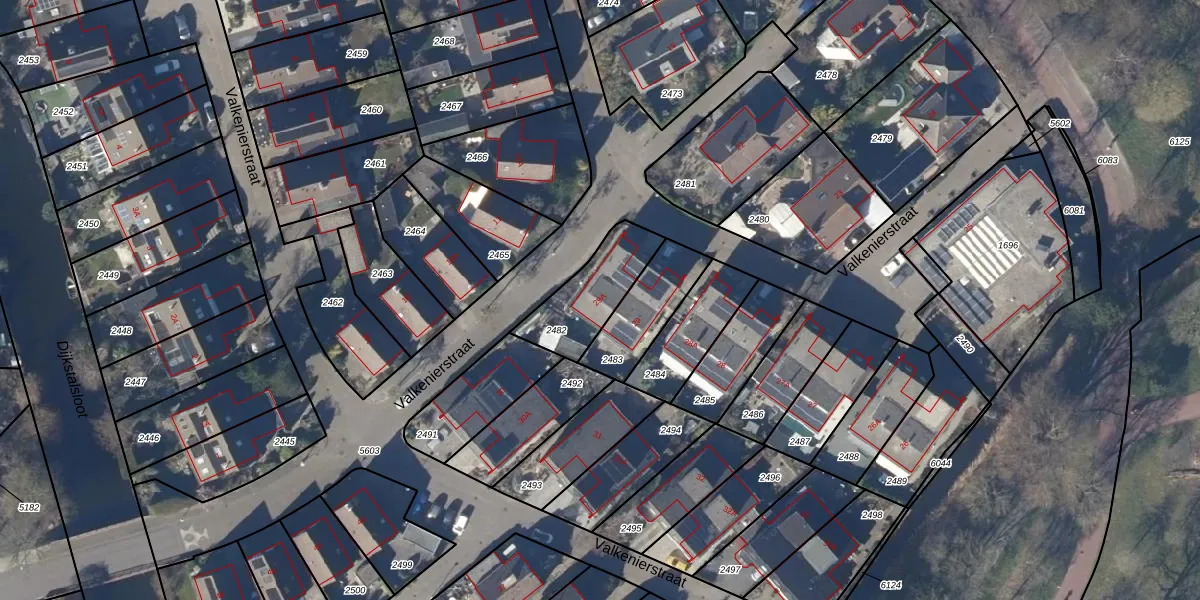 Gebruik de zoekbalk of klik op een perceel voor informatie over de adressen binnen dit perceel.