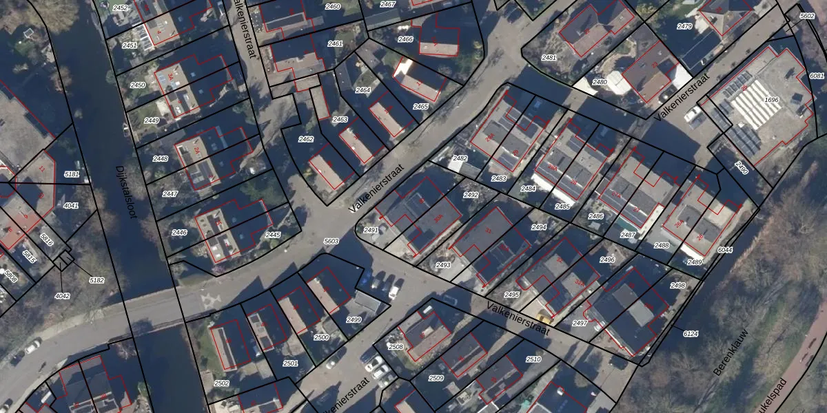 Gebruik de zoekbalk of klik op een perceel voor informatie over de adressen binnen dit perceel.