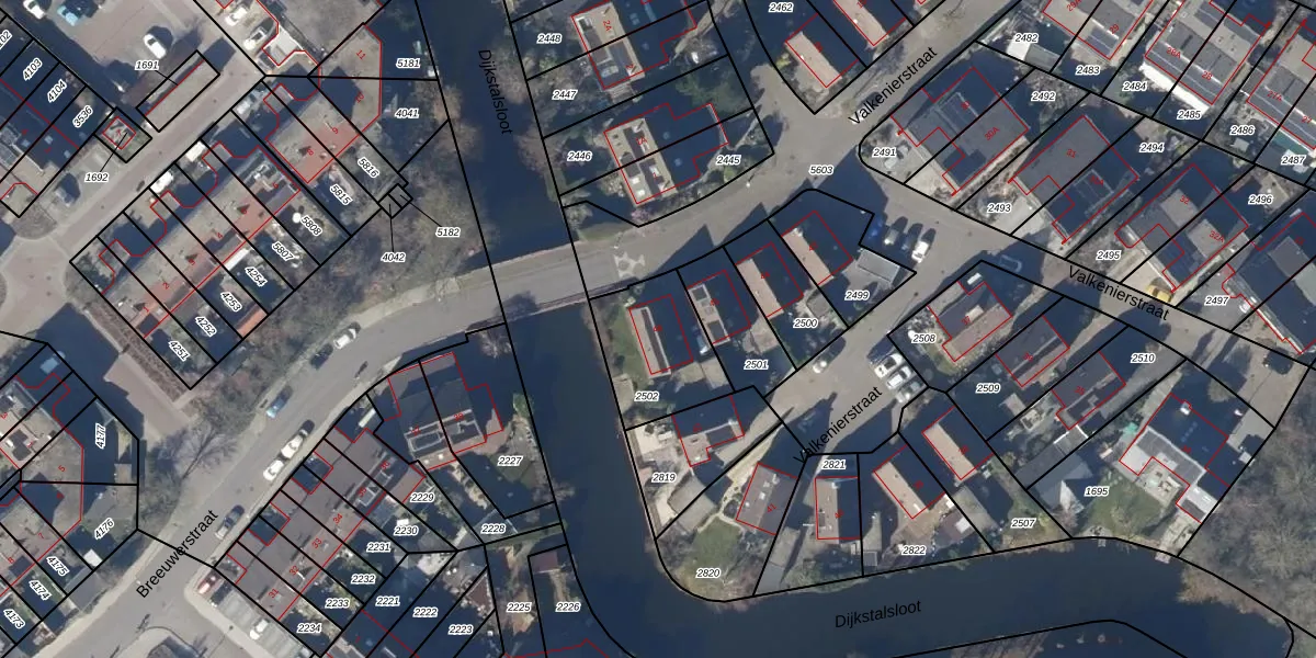 Gebruik de zoekbalk of klik op een perceel voor informatie over de adressen binnen dit perceel.