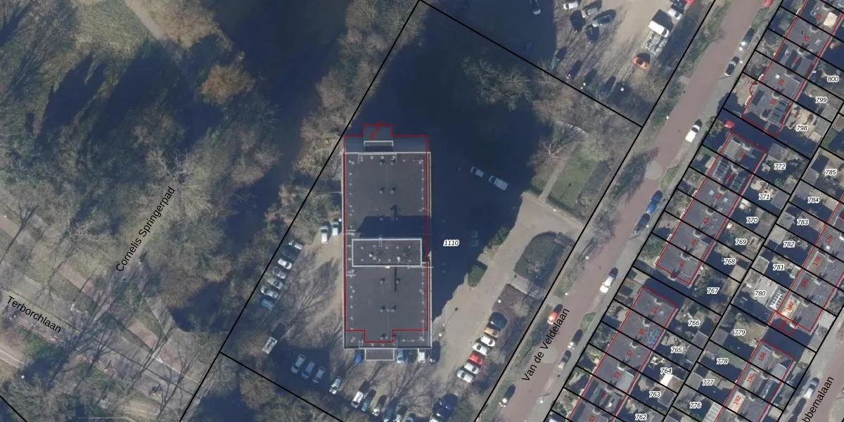 Het perceel waarop Van de Veldelaan 430 staat heeft een oppervlakte van 5865 m². Dit is een zeer groot perceel. De perceeloppervlakte wordt geregistreerd door het Kadaster. Gedetailleerde informatie over de maten van dit perceel kunt u vinden in het rapport Kadastrale kaart met maatvoering van Van de Veldelaan 430.