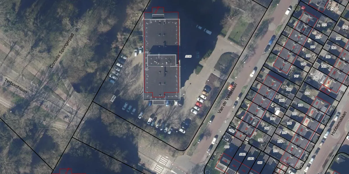 Het perceel waarop Van de Veldelaan 448 staat heeft een oppervlakte van 5865 m². Dit is een zeer groot perceel. De perceeloppervlakte wordt geregistreerd door het Kadaster. Gedetailleerde informatie over de maten van dit perceel kunt u vinden in het rapport Kadastrale kaart met maatvoering van Van de Veldelaan 448.