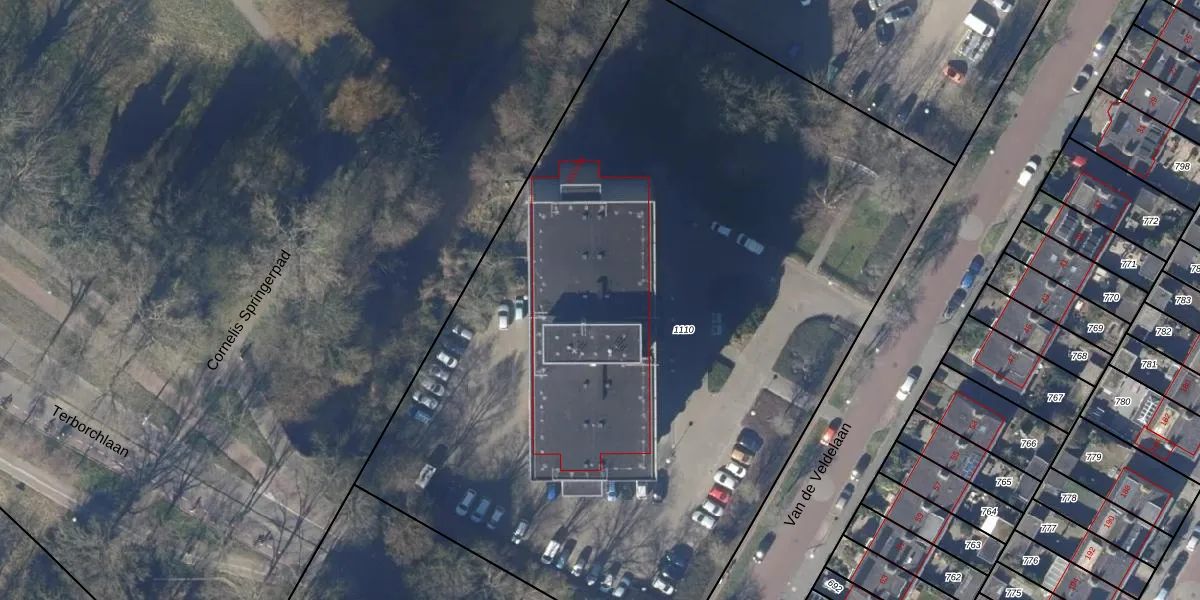 Het perceel waarop Van de Veldelaan 466 staat heeft een oppervlakte van 5865 m². Dit is een zeer groot perceel. De perceeloppervlakte wordt geregistreerd door het Kadaster. Gedetailleerde informatie over de maten van dit perceel kunt u vinden in het rapport Kadastrale kaart met maatvoering van Van de Veldelaan 466.