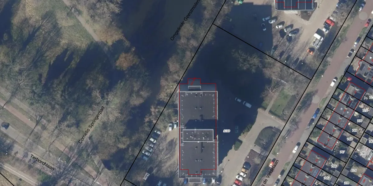 Het perceel waarop Van de Veldelaan 474 staat heeft een oppervlakte van 5865 m². Dit is een zeer groot perceel. De perceeloppervlakte wordt geregistreerd door het Kadaster. Gedetailleerde informatie over de maten van dit perceel kunt u vinden in het rapport Kadastrale kaart met maatvoering van Van de Veldelaan 474.