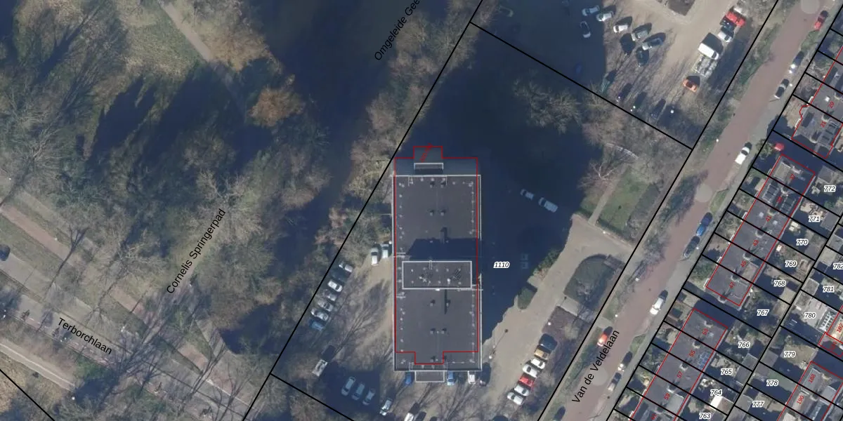 Het perceel waarop Van de Veldelaan 500 staat heeft een oppervlakte van 5865 m². Dit is een zeer groot perceel. De perceeloppervlakte wordt geregistreerd door het Kadaster. Gedetailleerde informatie over de maten van dit perceel kunt u vinden in het rapport Kadastrale kaart met maatvoering van Van de Veldelaan 500.