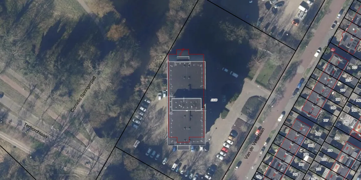 Het perceel waarop Van de Veldelaan 502 staat heeft een oppervlakte van 5865 m². Dit is een zeer groot perceel. De perceeloppervlakte wordt geregistreerd door het Kadaster. Gedetailleerde informatie over de maten van dit perceel kunt u vinden in het rapport Kadastrale kaart met maatvoering van Van de Veldelaan 502.