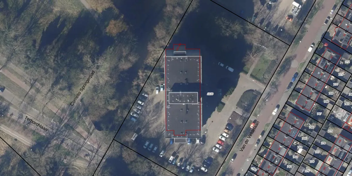 Het perceel waarop Van de Veldelaan 586 staat heeft een oppervlakte van 5865 m². Dit is een zeer groot perceel. De perceeloppervlakte wordt geregistreerd door het Kadaster. Gedetailleerde informatie over de maten van dit perceel kunt u vinden in het rapport Kadastrale kaart met maatvoering van Van de Veldelaan 586.