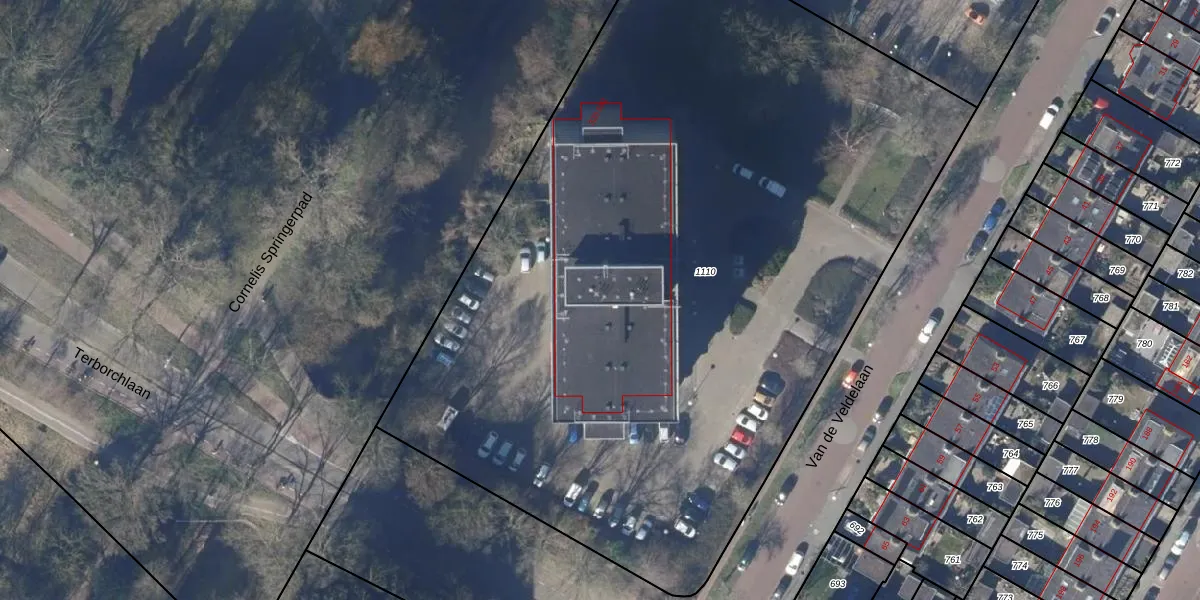 Het perceel waarop Van de Veldelaan 588 staat heeft een oppervlakte van 5865 m². Dit is een zeer groot perceel. De perceeloppervlakte wordt geregistreerd door het Kadaster. Gedetailleerde informatie over de maten van dit perceel kunt u vinden in het rapport Kadastrale kaart met maatvoering van Van de Veldelaan 588.