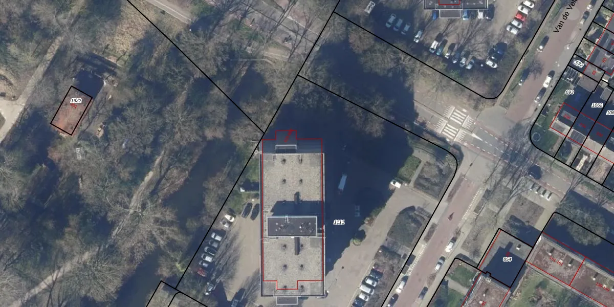 Het perceel waarop Van de Veldelaan 750 staat heeft een oppervlakte van 4954 m². Dit is een zeer groot perceel. De perceeloppervlakte wordt geregistreerd door het Kadaster. Gedetailleerde informatie over de maten van dit perceel kunt u vinden in het rapport Kadastrale kaart met maatvoering van Van de Veldelaan 750.