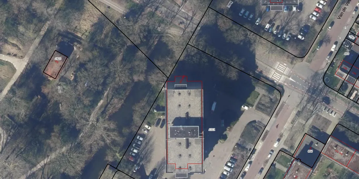 Het perceel waarop Van de Veldelaan 810 staat heeft een oppervlakte van 4954 m². Dit is een zeer groot perceel. De perceeloppervlakte wordt geregistreerd door het Kadaster. Gedetailleerde informatie over de maten van dit perceel kunt u vinden in het rapport Kadastrale kaart met maatvoering van Van de Veldelaan 810.