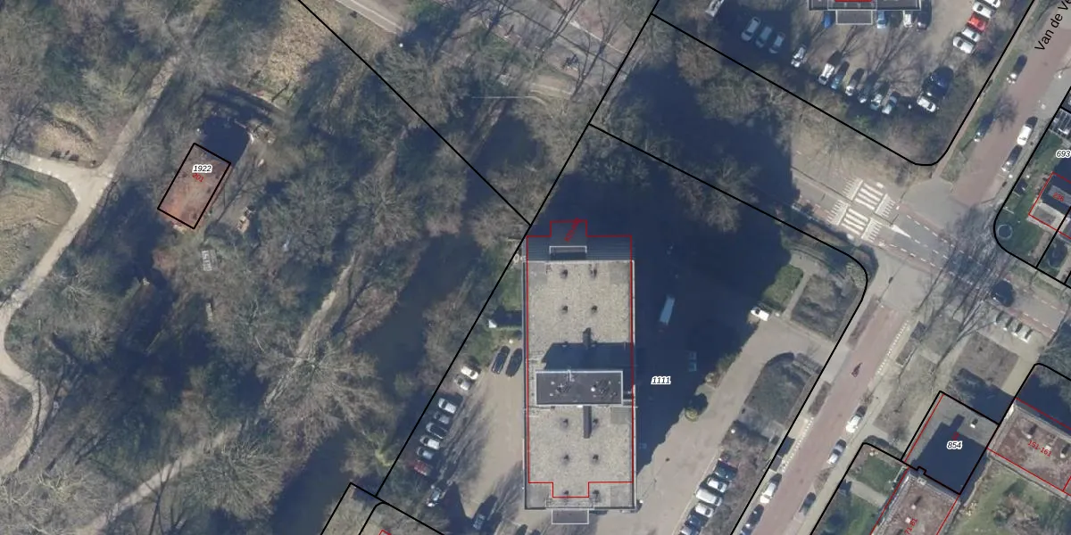 Het perceel waarop Van de Veldelaan 834 staat heeft een oppervlakte van 4954 m². Dit is een zeer groot perceel. De perceeloppervlakte wordt geregistreerd door het Kadaster. Gedetailleerde informatie over de maten van dit perceel kunt u vinden in het rapport Kadastrale kaart met maatvoering van Van de Veldelaan 834.