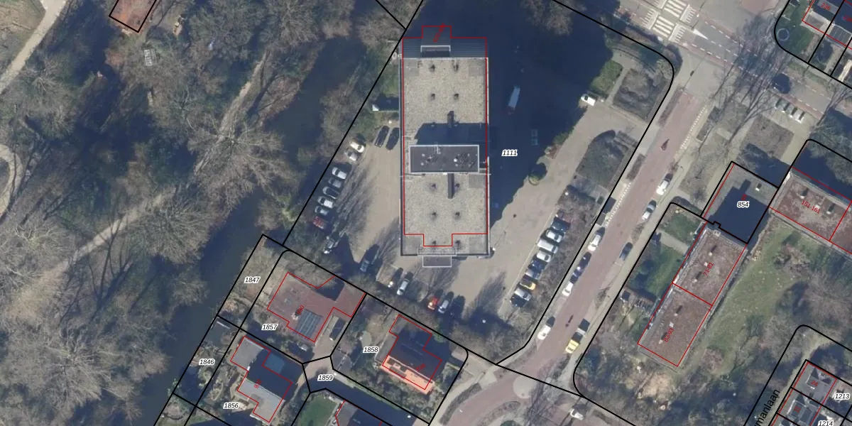Het perceel waarop Van de Veldelaan 880 staat heeft een oppervlakte van 4954 m². Dit is een zeer groot perceel. De perceeloppervlakte wordt geregistreerd door het Kadaster. Gedetailleerde informatie over de maten van dit perceel kunt u vinden in het rapport Kadastrale kaart met maatvoering van Van de Veldelaan 880.
