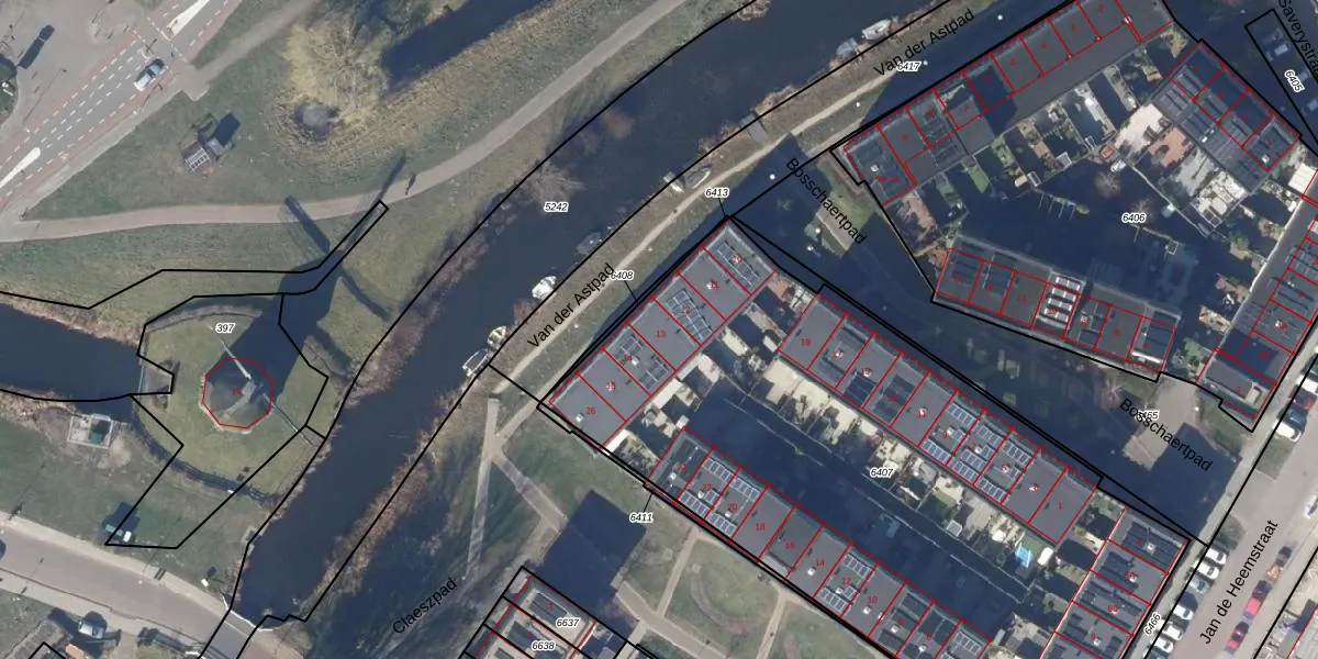Het perceel waarop Van der Astpad 13 staat heeft een oppervlakte van 3630 m². Dit is een zeer groot perceel. De perceeloppervlakte wordt geregistreerd door het Kadaster. Gedetailleerde informatie over de maten van dit perceel kunt u vinden in het rapport Kadastrale kaart met maatvoering van Van der Astpad 13.