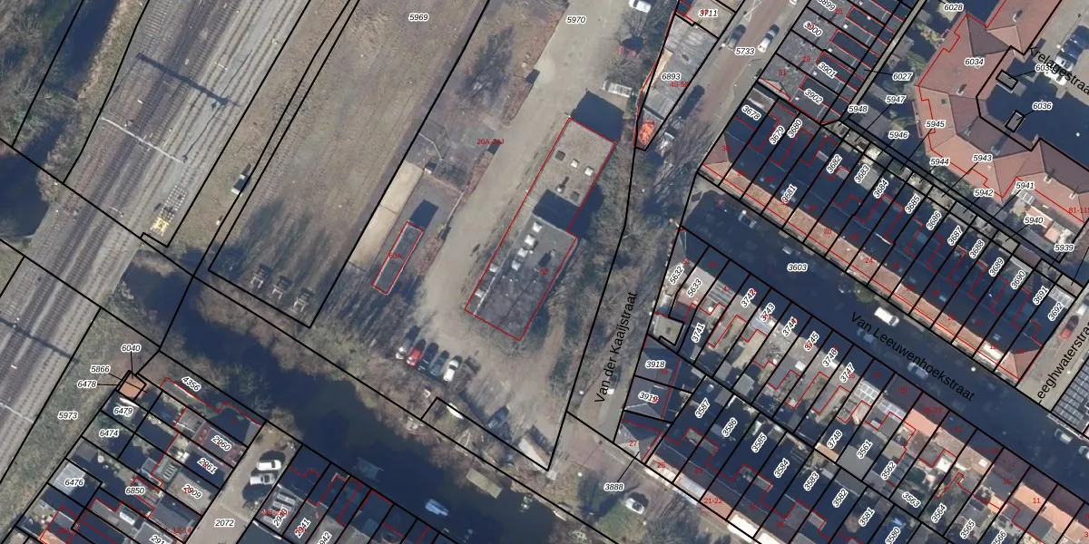 Het perceel waarop Van der Kaaijstraat 60 staat heeft een oppervlakte van 6425 m². Dit is een zeer groot perceel. De perceeloppervlakte wordt geregistreerd door het Kadaster. Gedetailleerde informatie over de maten van dit perceel kunt u vinden in het rapport Kadastrale kaart met maatvoering van Van der Kaaijstraat 60.