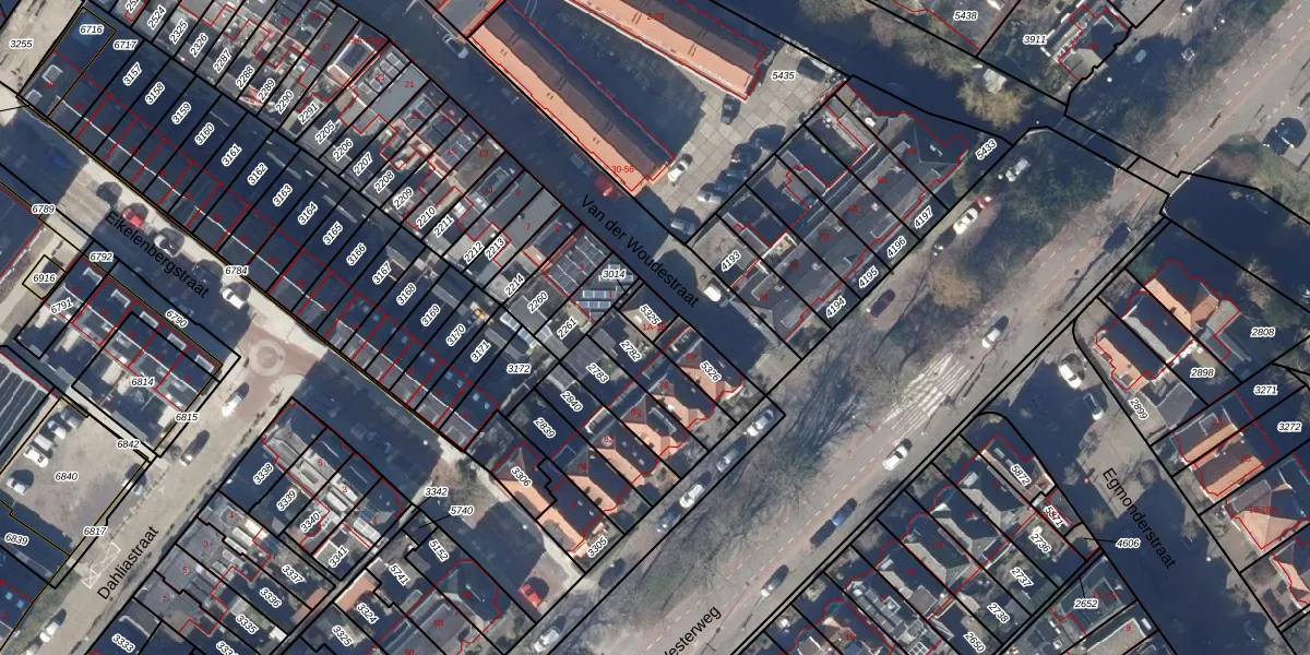 Het perceel waarop Van der Woudestraat 1-A staat heeft een oppervlakte van 44 m². Dit is een klein perceel. De perceeloppervlakte wordt geregistreerd door het Kadaster. Gedetailleerde informatie over de maten van dit perceel kunt u vinden in het rapport Kadastrale kaart met maatvoering van Van der Woudestraat 1-A.