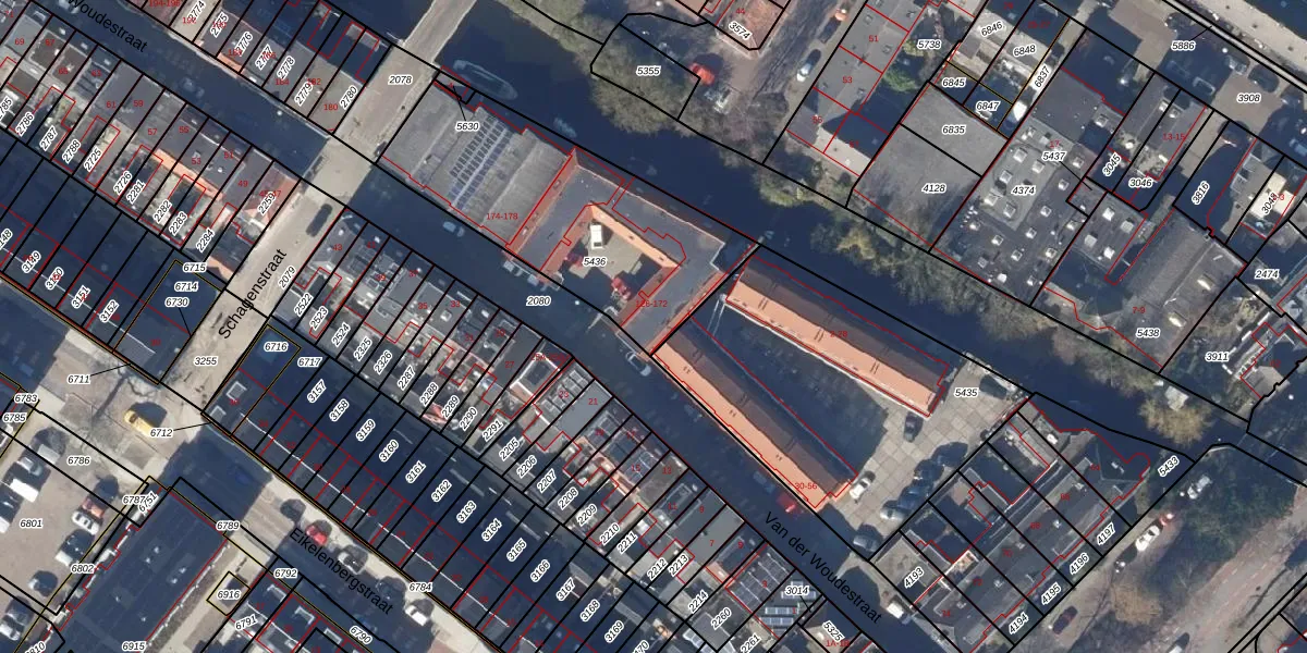 Het perceel waarop Van der Woudestraat 154 staat heeft een oppervlakte van 1040 m². Dit is een zeer groot perceel. De perceeloppervlakte wordt geregistreerd door het Kadaster. Gedetailleerde informatie over de maten van dit perceel kunt u vinden in het rapport Kadastrale kaart met maatvoering van Van der Woudestraat 154.