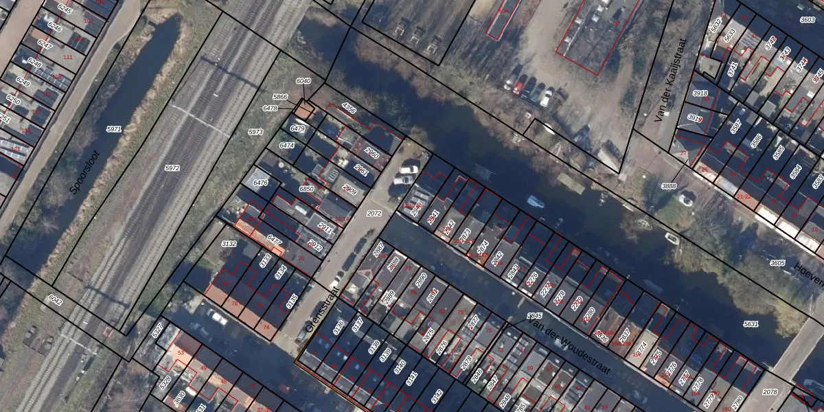 Het perceel waarop Van der Woudestraat 228 staat heeft een oppervlakte van 98 m². Dit is een klein perceel. De perceeloppervlakte wordt geregistreerd door het Kadaster. Gedetailleerde informatie over de maten van dit perceel kunt u vinden in het rapport Kadastrale kaart met maatvoering van Van der Woudestraat 228.