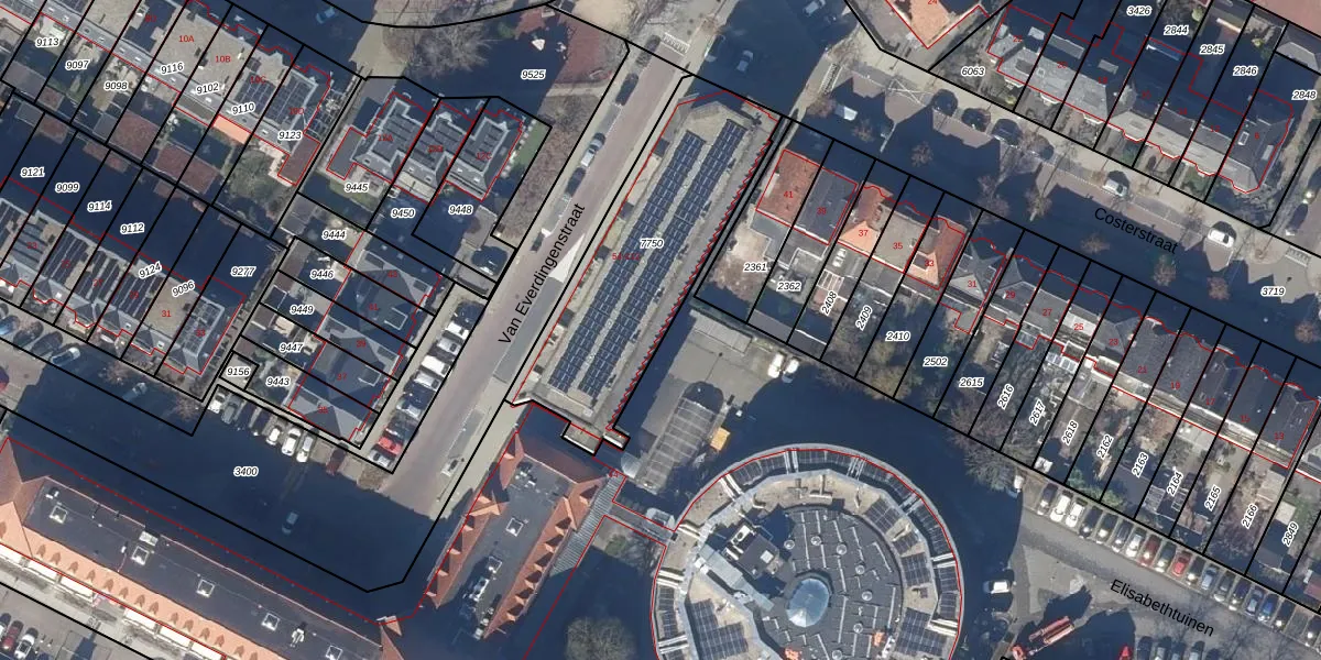 Het perceel waarop Van Everdingenstraat 106 staat heeft een oppervlakte van 950 m². Dit is een groot perceel. De perceeloppervlakte wordt geregistreerd door het Kadaster. Gedetailleerde informatie over de maten van dit perceel kunt u vinden in het rapport Kadastrale kaart met maatvoering van Van Everdingenstraat 106.