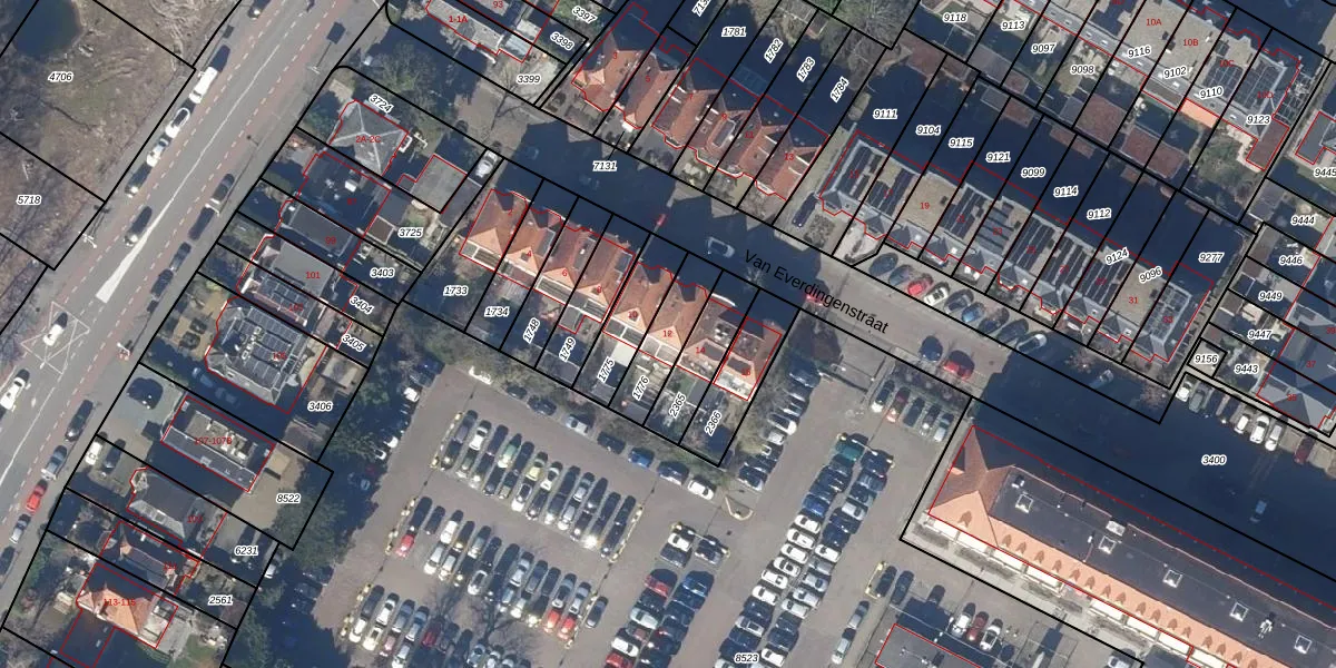 Het perceel waarop Van Everdingenstraat 12 staat heeft een oppervlakte van 157 m². Dit is een middelgroot perceel. De perceeloppervlakte wordt geregistreerd door het Kadaster. Gedetailleerde informatie over de maten van dit perceel kunt u vinden in het rapport Kadastrale kaart met maatvoering van Van Everdingenstraat 12.