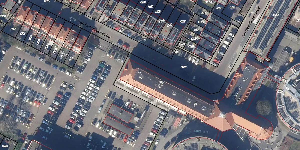 Het perceel waarop Van Everdingenstraat 32 staat heeft een oppervlakte van 1,5 ha. Dit is een zeer groot perceel. De perceeloppervlakte wordt geregistreerd door het Kadaster. Gedetailleerde informatie over de maten van dit perceel kunt u vinden in het rapport Kadastrale kaart met maatvoering van Van Everdingenstraat 32.